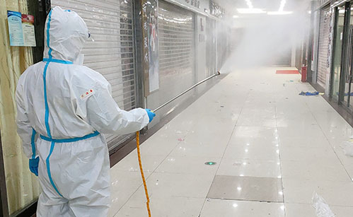 每次施工前需要提前通知服務(wù)單位的各個(gè)部門(mén),提前做好相關(guān)準(zhǔn)備,對(duì)絲織物、橡膠、不銹鋼、食品等進(jìn)行必要的覆蓋。