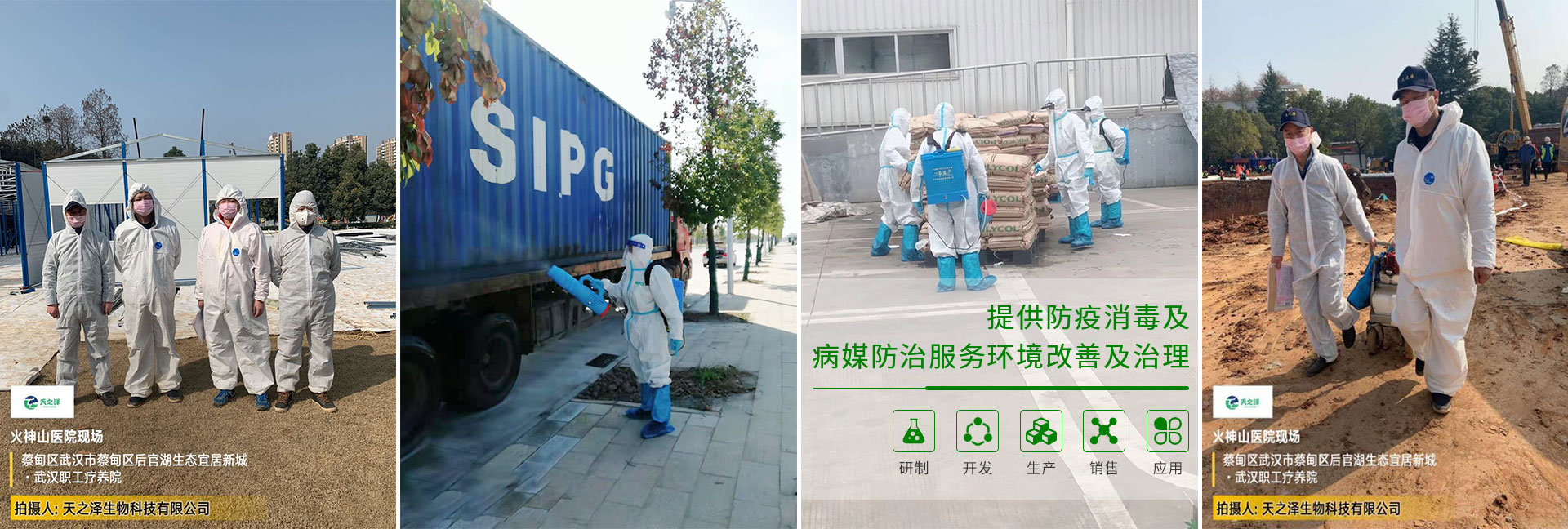 武漢市天之澤生物科技有限公司成立于2014年,是一家專(zhuān)業(yè)性提供防疫消毒及病媒防治服務(wù)環(huán)境改善及治理的公司,具備有害生物防治A級(jí)資質(zhì),消毒服務(wù)B級(jí)。公司自成立伊始就確立了科技興企的發(fā)展戰(zhàn)略,專(zhuān)注于環(huán)保產(chǎn)品研制、開(kāi)發(fā)、生產(chǎn)、銷(xiāo)售及應(yīng)用,聚集了優(yōu)秀的研發(fā)技術(shù)團(tuán)隊(duì)、創(chuàng)新管理團(tuán)隊(duì)和熟悉市場(chǎng)的營(yíng)銷(xiāo)團(tuán)隊(duì),始終堅(jiān)持技術(shù)與服務(wù)兩手抓的發(fā)展策略,能快速響應(yīng)市場(chǎng)需求,提供個(gè)性化的產(chǎn)品與服務(wù)。